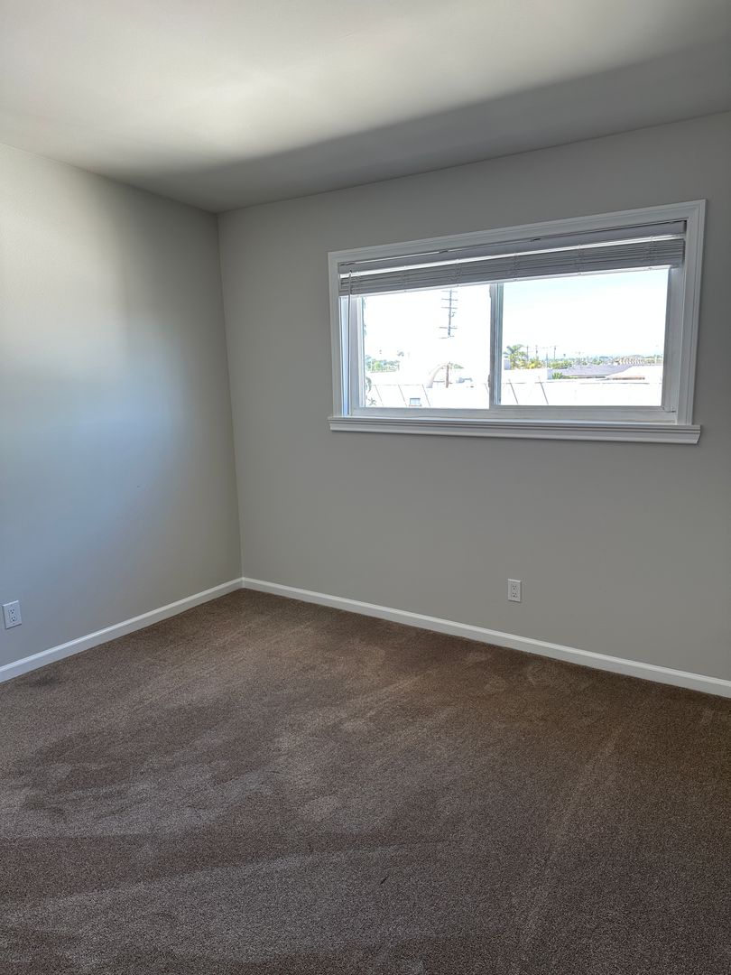 Sunny 1 bedroom, 1 bath unit on top floor. $2,000.00 per month, $2,000.00 security. Upgraded amenities include slab kitchen countertops, upgraded appliances-stove, fridge and dishwasher, updated bathroom and baseboards throughout with near new carpet. Bright and airy with treetop views of the lush courtyard. Carport parking space includes storage. Gated building features pool and onsite laundry. Located across the street from Walteria park. Walkable neighborhood close to shopping, restaurants, library, bus and more. Just 2 miles from beach. Small dog or cat OK. Available now. Call (310)375-6842 to schedule a showing.