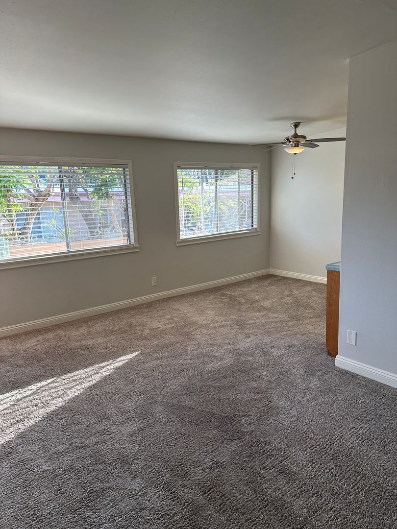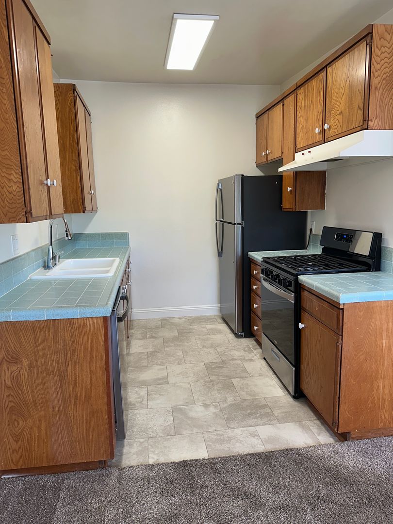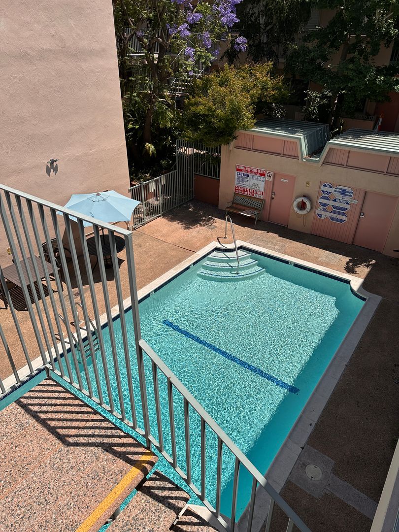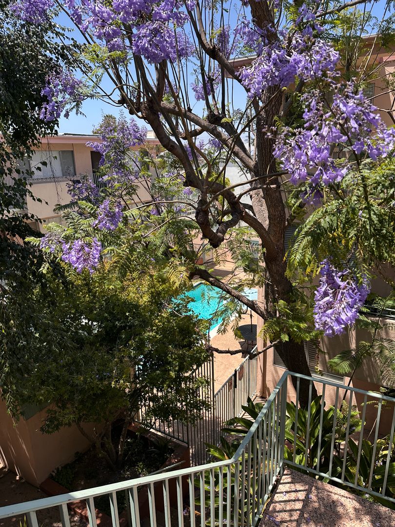 Sunny 1 bedroom, 1 bath unit on top floor. $1,995.00 per month, $1,995.00 security. Upgraded amenities include vintage tile countertops, upgraded appliances-stove, fridge and dishwasher, ceiling fan, large closet, near new carpet and balcony area in front. Top floor location. Bright and airy with treetop views of the lush courtyard. Carport parking space includes storage. Gated building features pool and onsite laundry. Located across the street from Walteria park. Walkable neighborhood close to shopping, restaurants, library, bus and more. Just 2 miles from beach. Small dog (under 20 lbs) or cat OK. Available now. Call (310)375-6842 to schedule a showing.